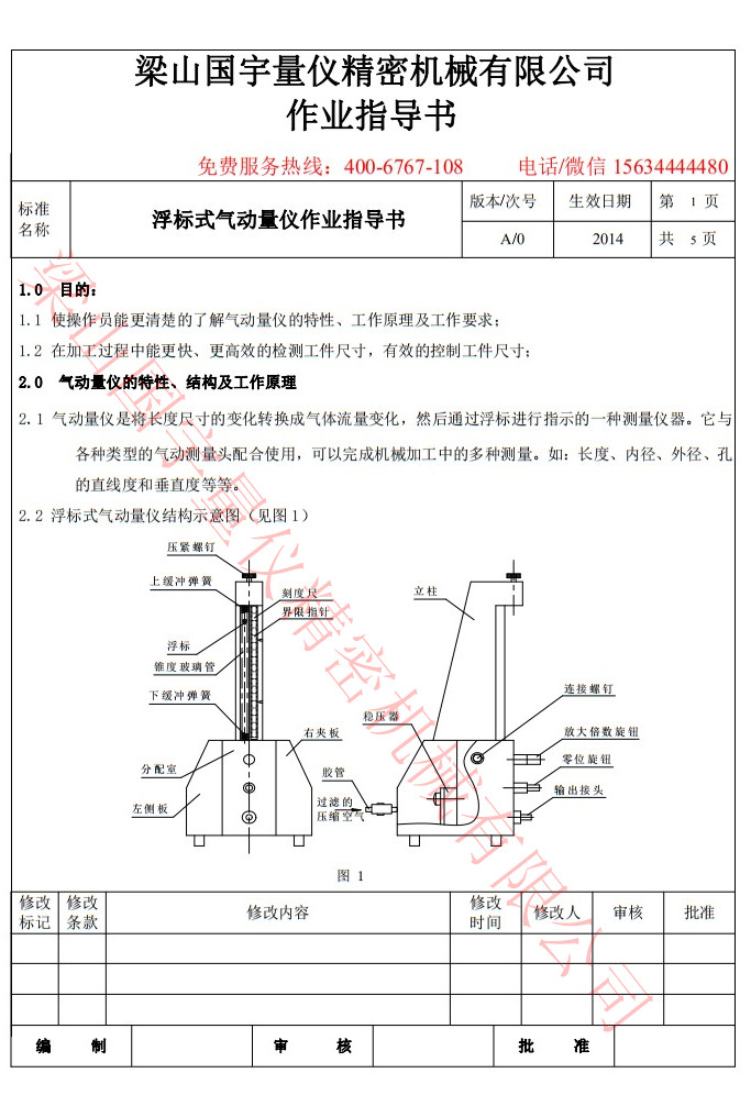 1.1 使操作員能更清楚的了解氣動量儀的特性、工作原理及工作要求;